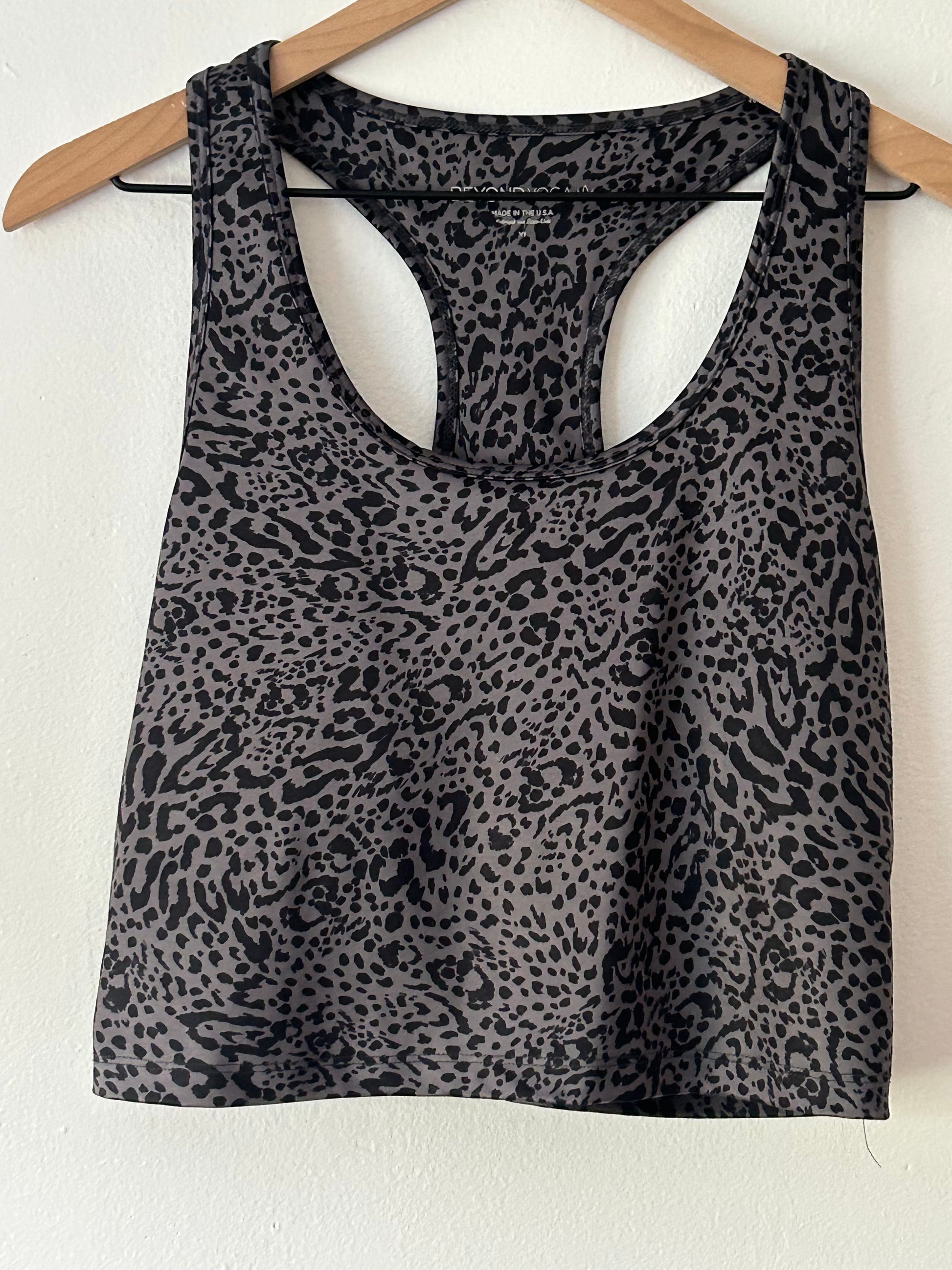Beyond Yoga High Waist Gray/Black Leopard Leggings and Top Set