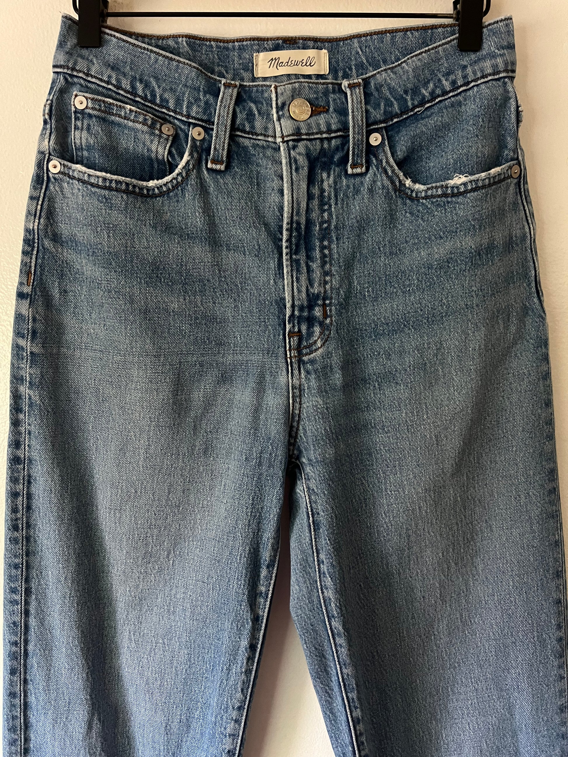 Meet your new everyday denim. Madewell’s Perfect Vintage Jean combines a flattering high rise with that classic tapered-leg look everyone loves. Crafted from premium cotton denim with a touch of stretch, these jeans hold you in while still staying comfortable. Perfect for pairing with tees, sweaters, or button-downs. In good used condition with some wear but plenty of life left.