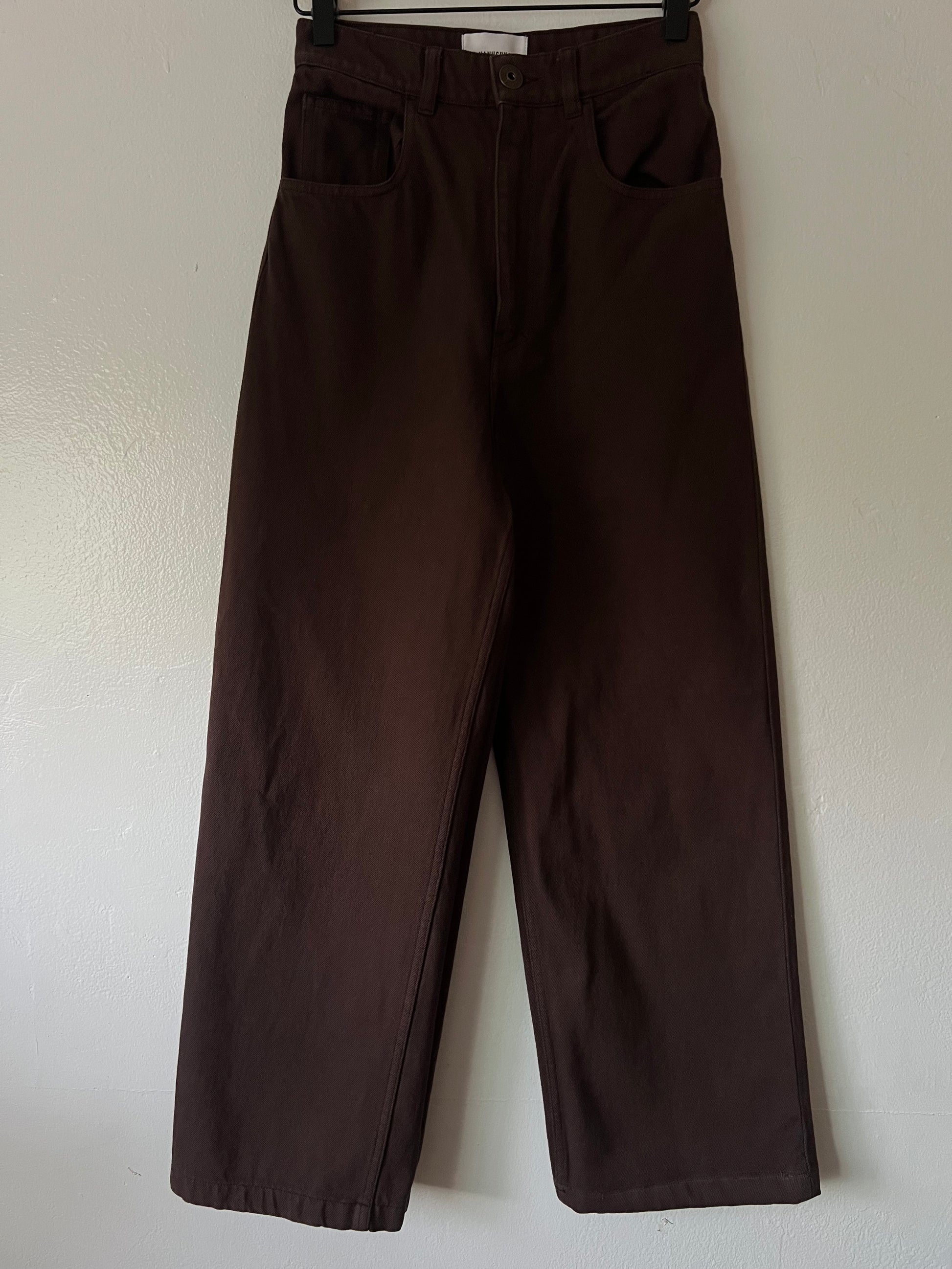 Elevate your everyday wardrobe with these chic Nanushka High-Rise Wide-Leg Jeans. Crafted from 100% premium cotton, they offer that perfectly structured, non-stretch denim feel. Designed with a flattering high rise and a wide-leg shape, these jeans create an effortlessly elongated look. The rich wash and clean finish make them an easy staple to dress up or down. In excellent preowned condition.