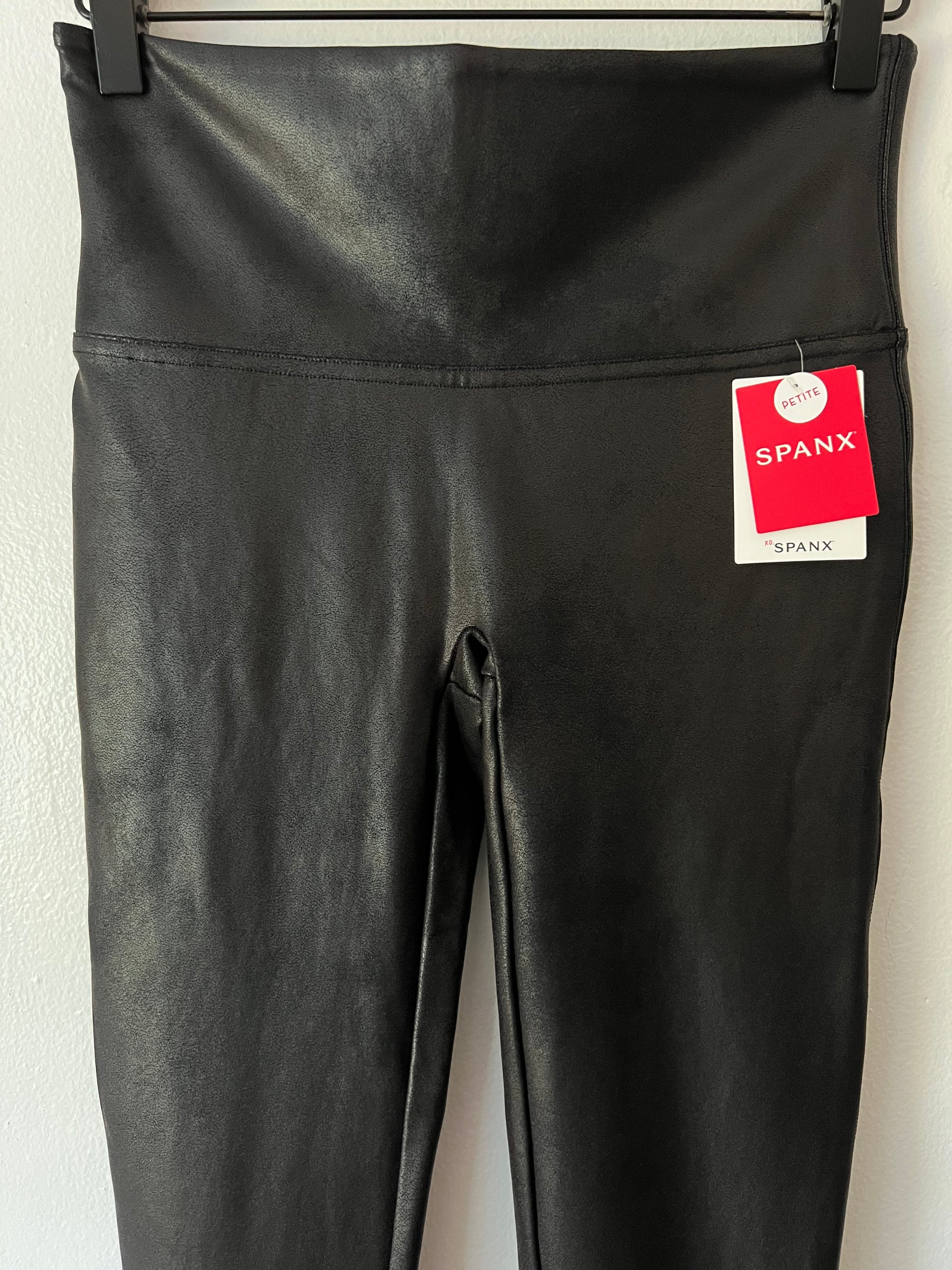 Spanx Faux Leather Leggings in Black with a Metallic Shimmer Finish