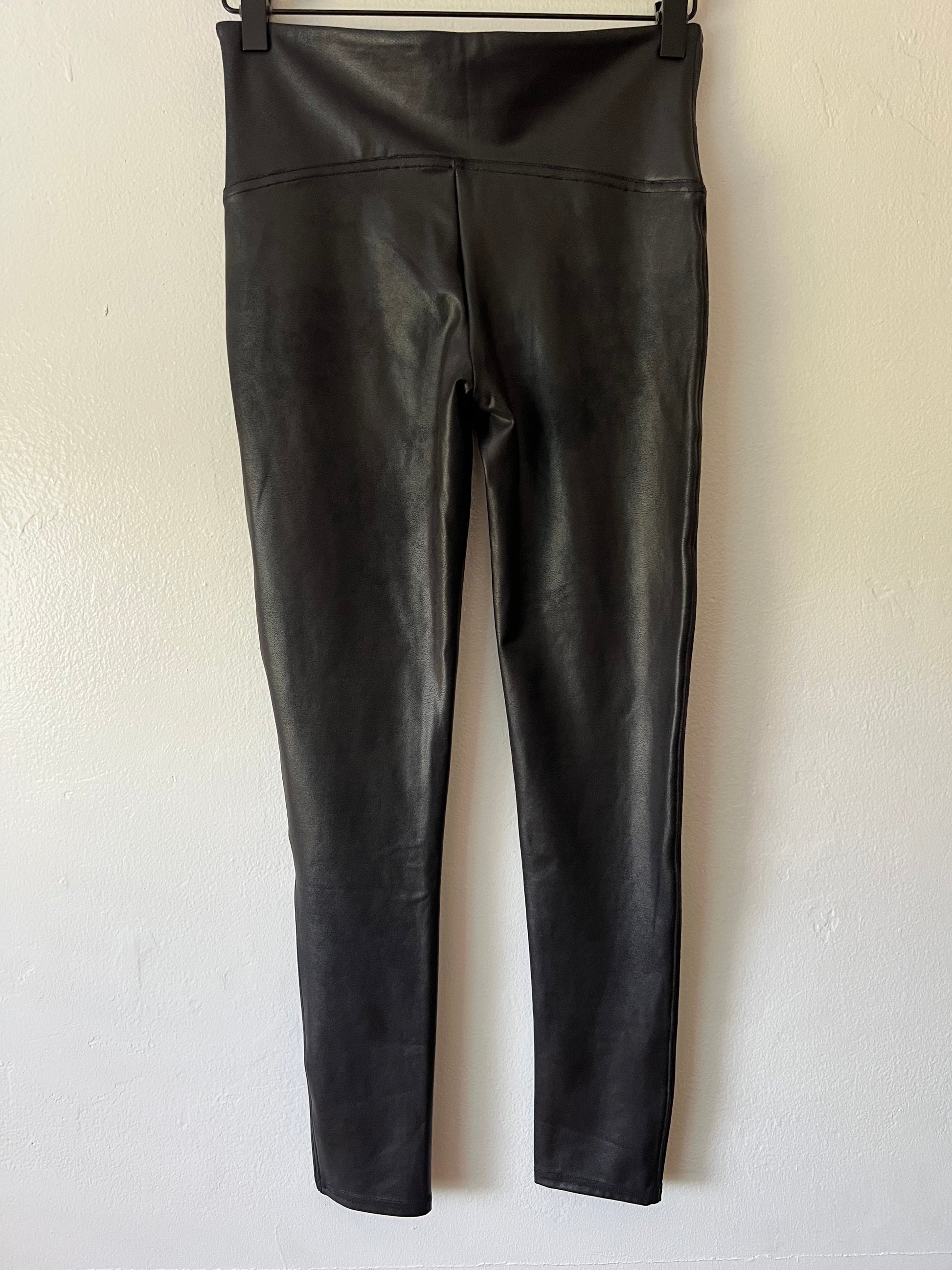 These gorgeous Spanx leggings feature a shiny finish that gives an edge to any outfit! With their signature slimming silhouette and high-shine finish, they deliver stand-out style that's ready for anything. The Slim is Built In™— double-layer waistband smooths tummy and offers great coverage. In good shape with no rips or stains.